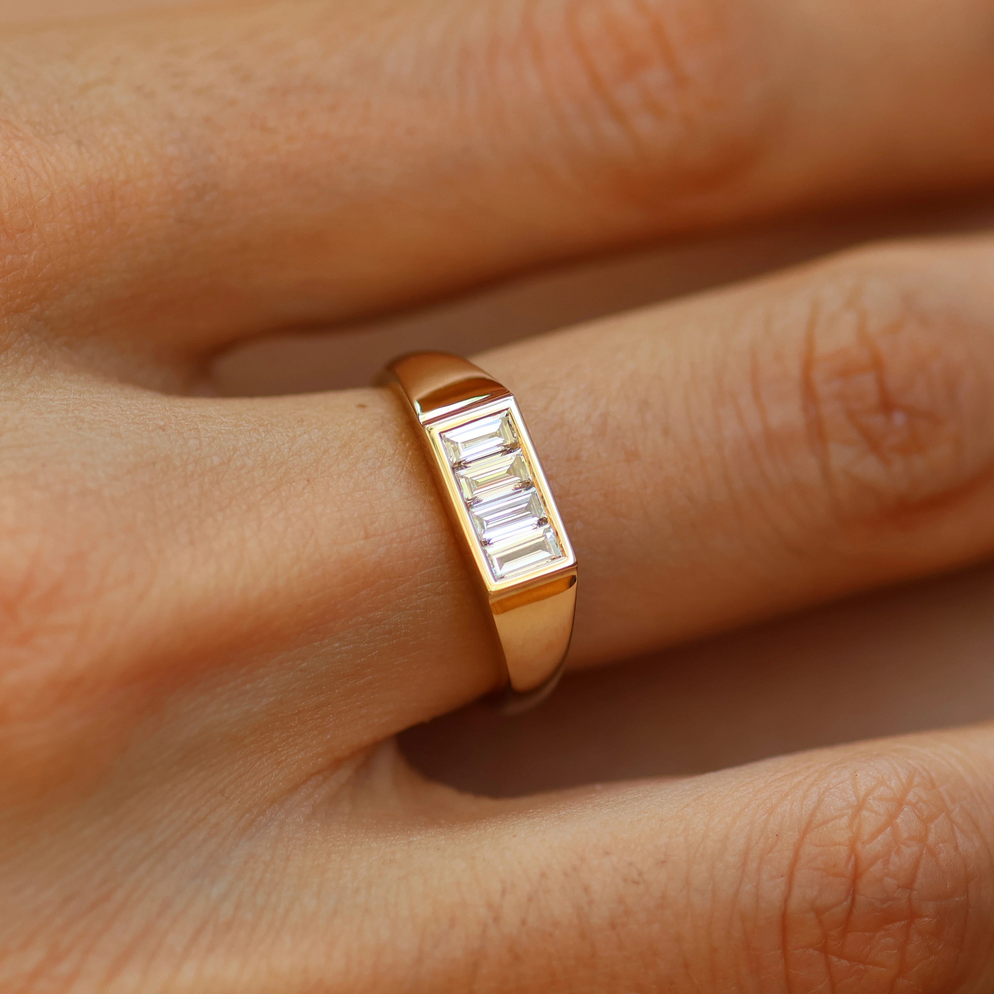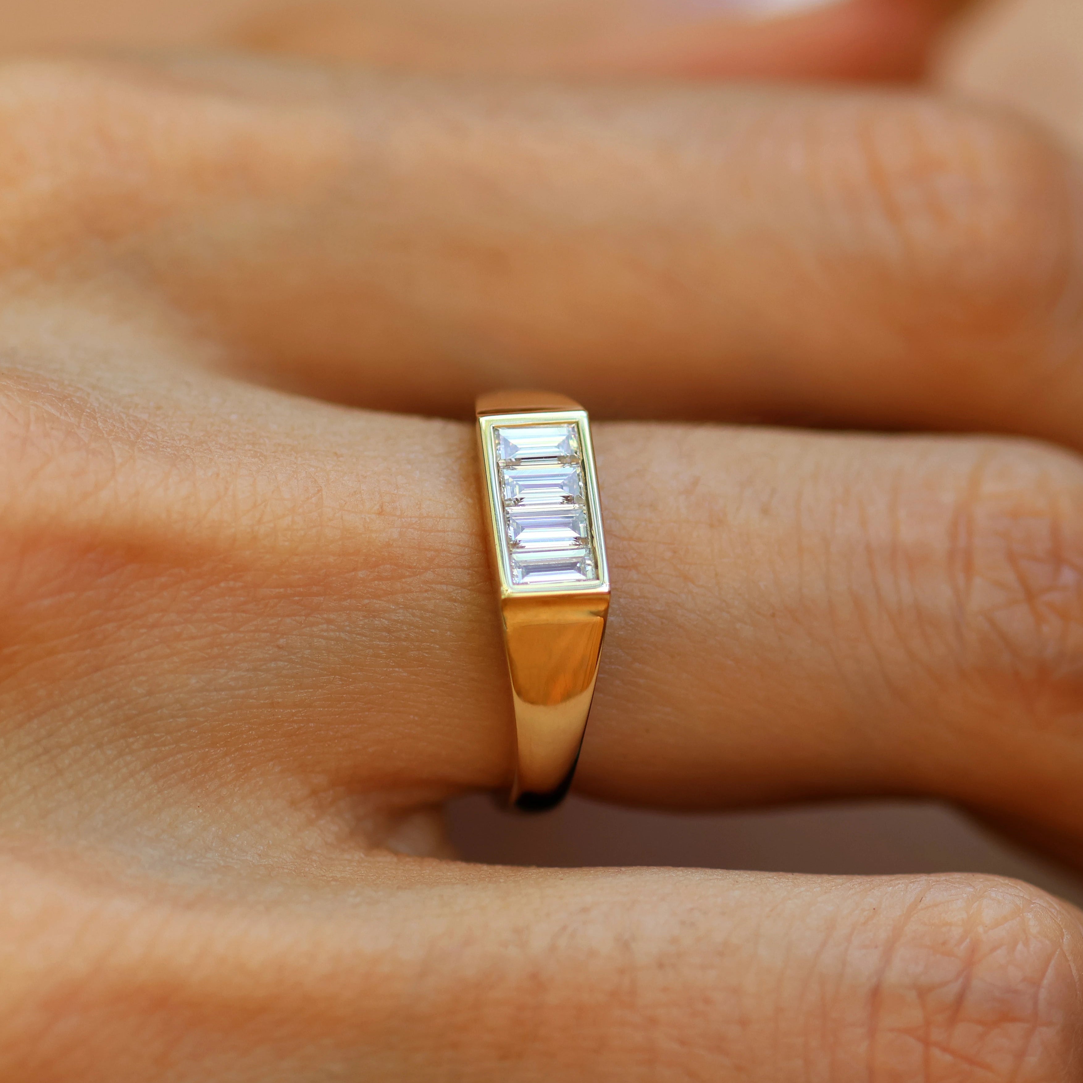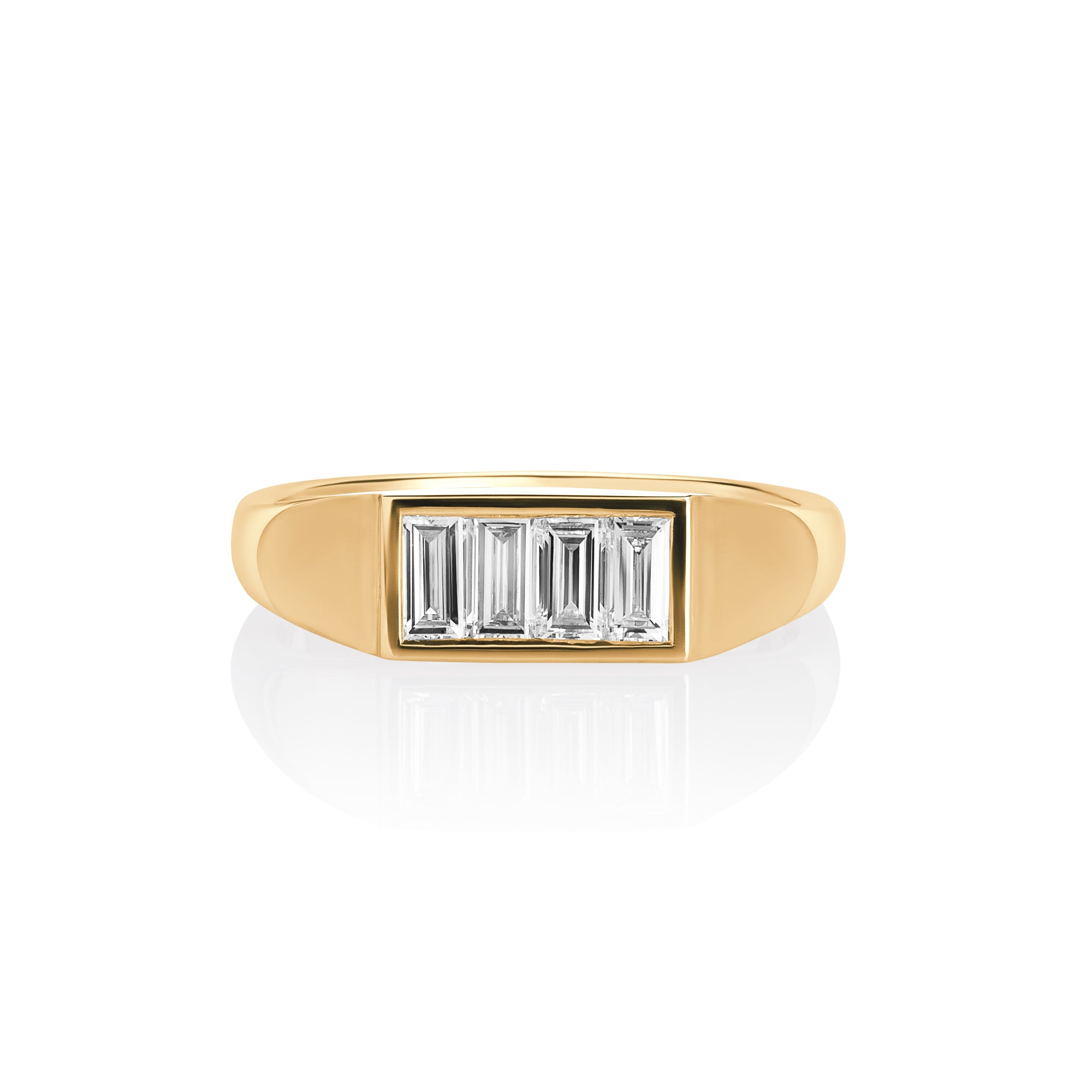 Architectural elegance meets modern edge. The Portico Band reimagines the classic signet ring with four baguette-cut lab-grown white diamonds, totaling 0.4ct, set in a bold rectangular frame.
