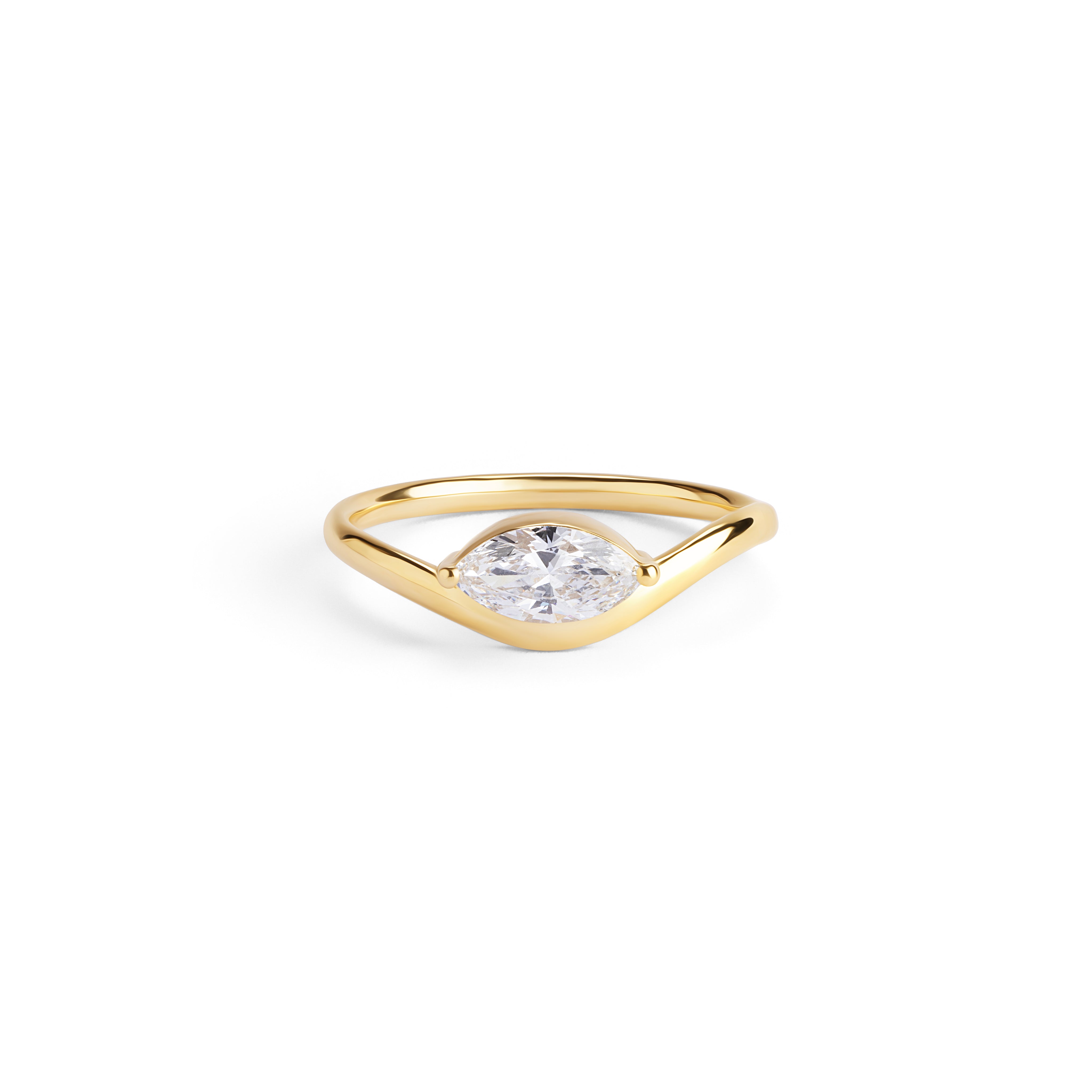 The Marquise Band features a 0.5ct marquise-cut white diamond set within a fluid, sculptural gold band. The soft curves of the design cradle the stone naturally, creating a sense of movement and ease rather than rigid symmetry.